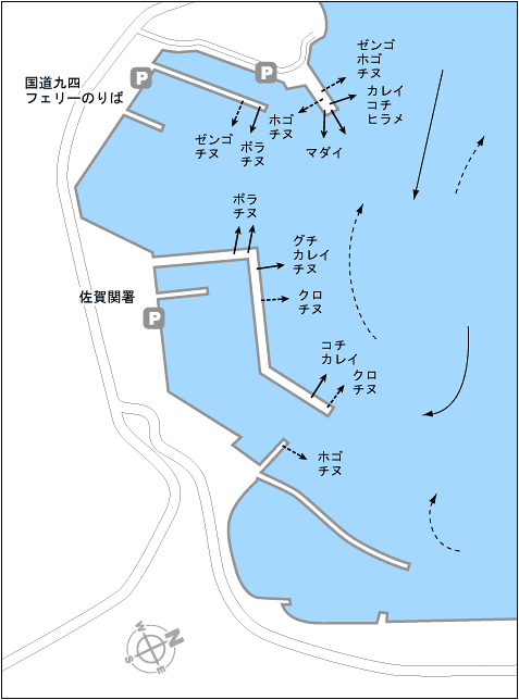 赤灯台から沖向きの遠投でカレイ・キス・コチに小ダイも混じる。警察前の波止からはダゴチンでチヌが狙えるほかフカセでクロも釣れる。チヌは7月頃の夜釣りが狙い目だ。