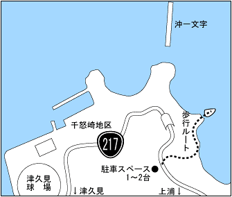 国道217号線千怒崎峠から徒歩5分程で辿り着く地磯。一旦浜に出て浜伝いに移動する。満潮時には通りにくいところがあるので注意。