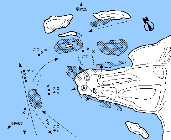 向島の瀬では一番魚影の濃いところである。3月下旬ごろからの乗っ込みチヌは大型が有望。落ちのチヌも数釣れる。クロもA・B点の沖、沈み回りに居ついており、キロクラスも夢ではない。チヌ、クロとも年間を通して狙える。下げでA・Bの沖、上げでC点からが釣りやすい。Dは沈み瀬周辺をたんねんにさぐってチヌ、クロ。北西の風に弱いので冬季は注意する。