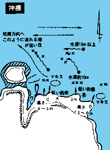 十分水深のあるA級ポイントで大型のマダイも釣れる。上げ潮に足元にマキエを打ち、沖目を釣ると大型のチヌ、クロが釣れる。波のない日はAとBから。波が高い日はCとDから狙う。沖は水深があり、マダイは竿2本以上、チヌ、クロは竿1本半のタナをとる。