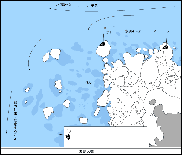 造船所を通って行くので、作業中は入れない。六連島との連絡船や船の往来があるので、仕掛けを沖まで流す際は注意が必要。